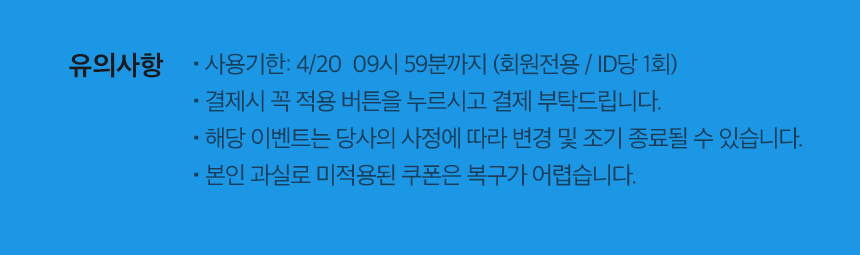 - • 사용기한: 4/20 09시 59분까지 (회원전용/ ID당 1회)