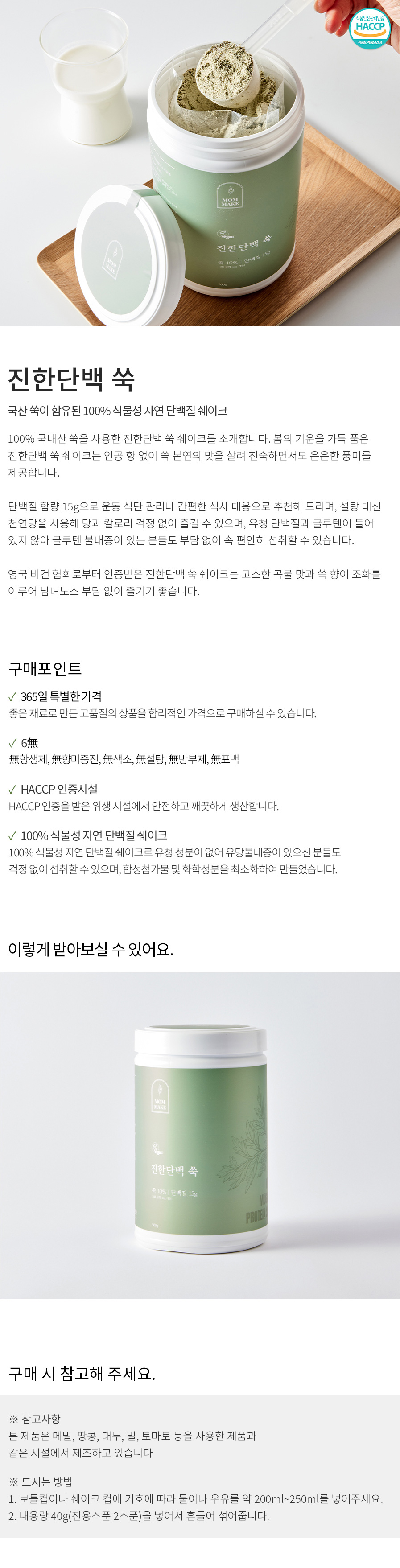 [맘메이크] 진한단백 쑥 단백질쉐이크 (500g/통)